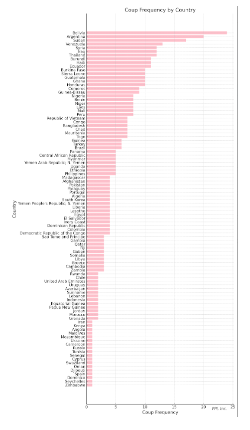 어느나라에서 쿠데타가 가장 많이 발생했을까?