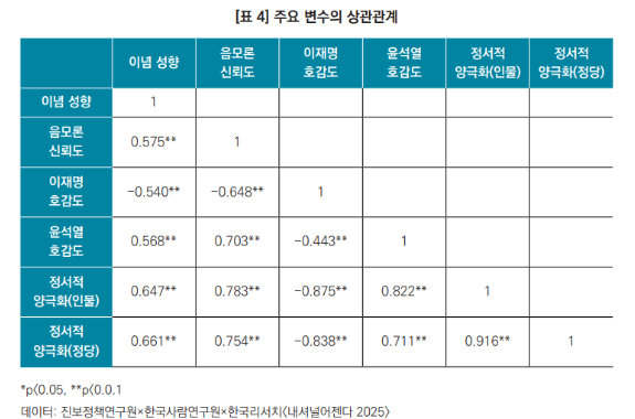 정서적 양극화와 음모론 신뢰도의 관계는 기존 해외 연구에서 확인된 바 있다. Hetherington & Weiler(2009)는 특정 정당에 대한 반감이 민주주의적 가치보다 권위주의적 질서(Authoritarian Order)를 우선시하는 태도로 이어질 수 있음을 보여준 바 있다. 이러한 감정 중심의 정치적 사고는 민주주의 제도 자체에 대한 신뢰를 약화시킬 수 있다. 나아가 Uscinski & Parent(2014)에 따르면 특정 정치세력에 대한 강한 반감과 거부감은 그 집단을 악마화하는 불확실한 음모론을 더 쉽게 믿게끔 한다.